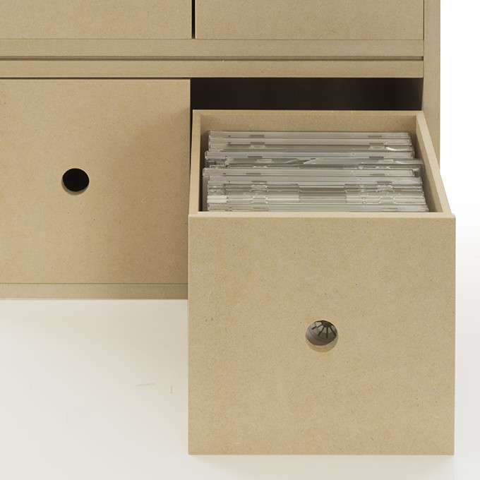 引き出し内にCDが少ない場合は、Piega CDスタンド(CDS-05-S)を組み合わせて、CDが倒れない様に内部を仕切って使えます。