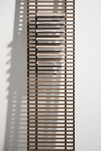 縦材にウォールナット、横材にMDFを使用しています。それぞれの木が持つブラウンな風合いを大切にした仕上がりです。